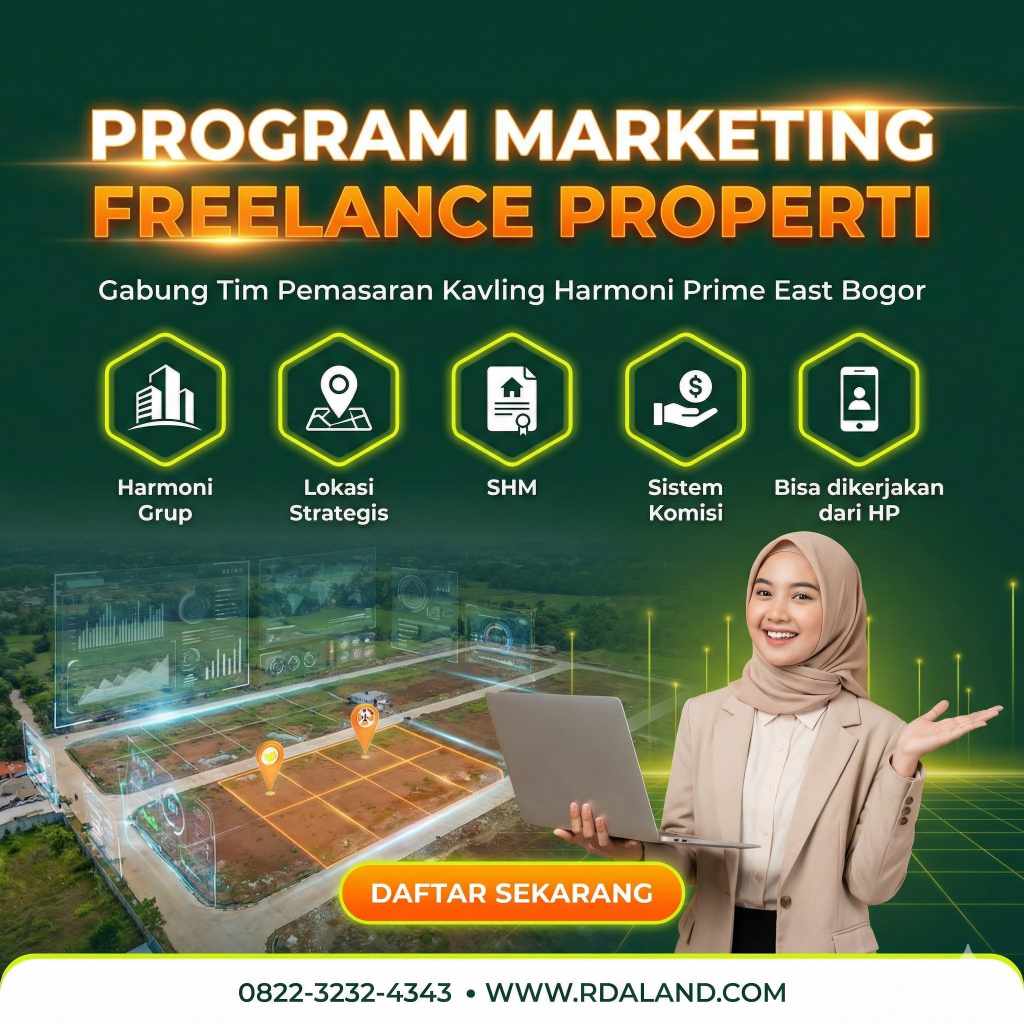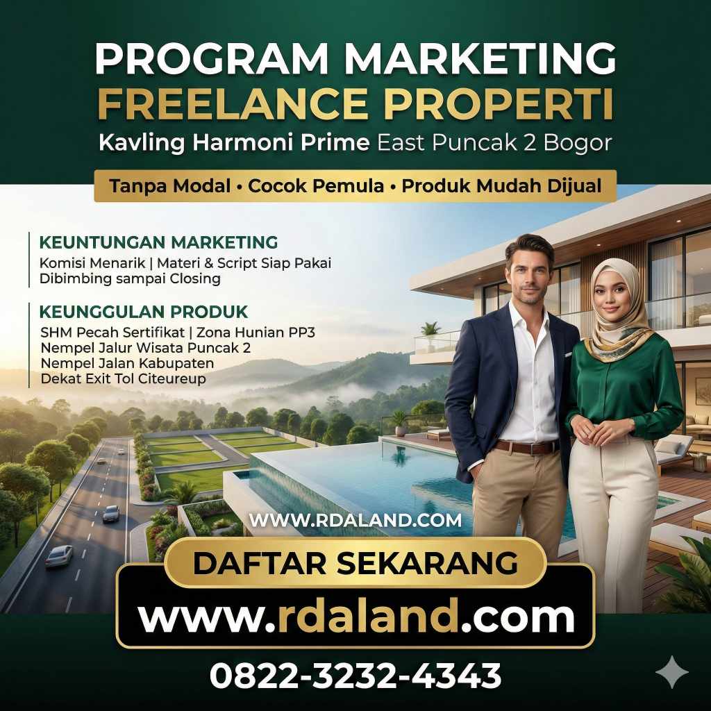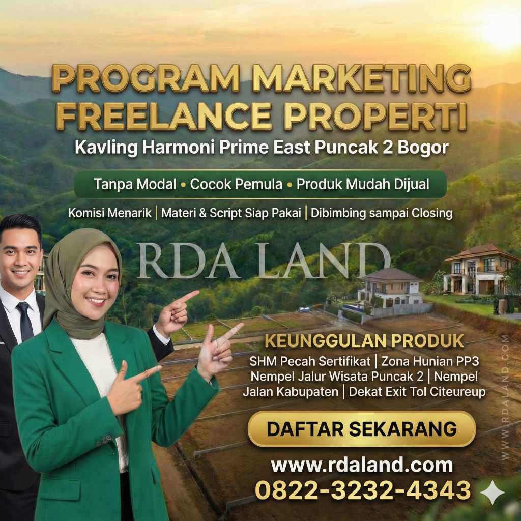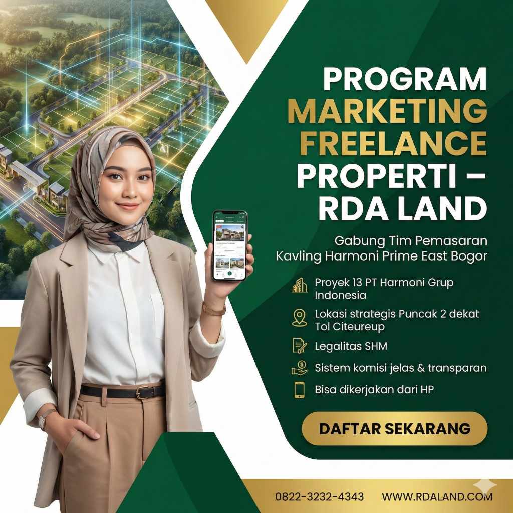 RDA LAND DAFTAR SEKARANG Daftar Marketing Freelance Properti Tanpa Modal Lowongan Marketing Freelance Property | Kerja Online Fleksibel | Berbasis Komisi Program resmi rekrutmen marketing freelance properti oleh RDA LAND. Cocok untuk kerja freelance marketing properti dari rumah, terbuka untuk seluruh Indonesia termasuk Jakarta, Bogor, Bandung, dan Cianjur Kota. Definisi: Marketing freelance properti adalah sistem […]